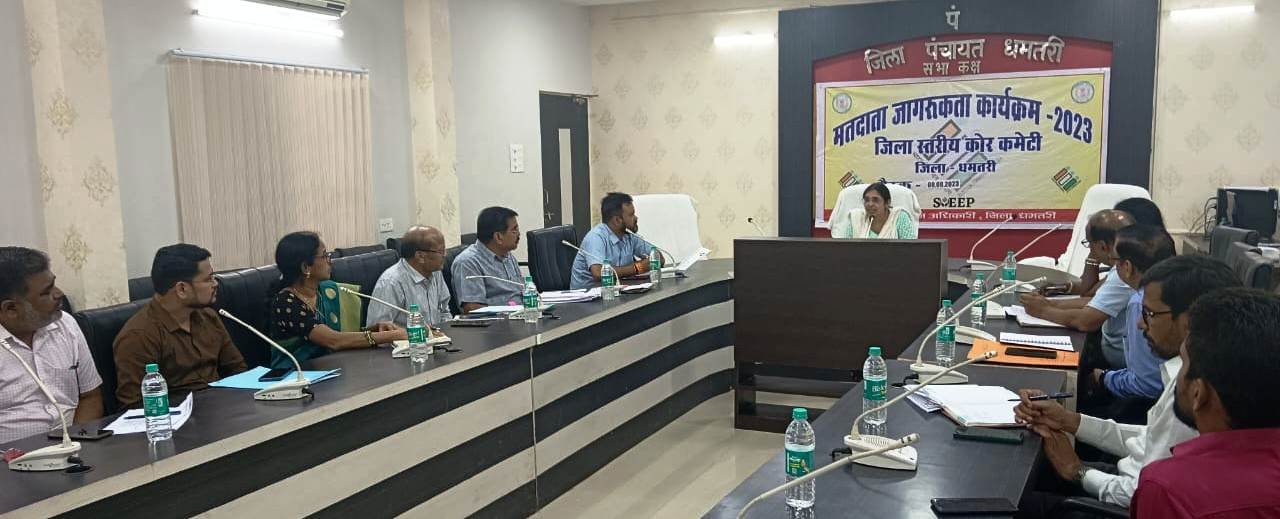 धमतरी । कलेक्टर ऋतुराज रघुवंशी के निर्देश पर आज मुख्य कार्यपालन अधिकारी जिला पंचायत एवं स्वीप जिला नोडल अधिकारी श्रीमती रोक्तिमा यादव ने जिला पंचायत के सभाकक्ष में जिला स्तरीय कोर कमेटी के सदस्यों की बैठक ली।