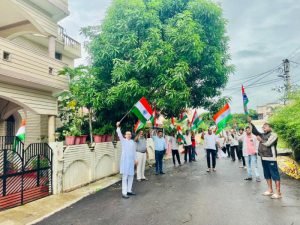 राजेन्द्र शर्मा पार्षद एवं पूर्व सभापति नगर निगम ने कहा कि आज हमारा देश हर्षोल्लास के साथ आजादी का अमृत महोत्सव मना रहा है. आदरणीय प्रधानमंत्री नरेंद्र मोदी जी के आह्वान में शुरू किया गया हर घर तिरंगा घर घर तिरंगा अभियान अब हर देशवासी का अभियान बन गया है| इस अभियान में देश का प्रत्येक नागरिक बढ़ चढ़ के हिस्सा ले रहा है तथा प्रत्येक देशवासी अपने घरों में तिरंगा फहरा रहे हैं| साथ ही अपनी तस्वीर खिंच कर वीडियो बनाकर सोशल मीडिया में अपलोड कर लोगों को जागरूक कर उन्हें इस अभियान से जुड़ने के के लिये प्रेरित कर रहे हैं. आज देश भर में हर घर अभियान देशभक्ति से सराबोर एक महापर्व बन चुका है|