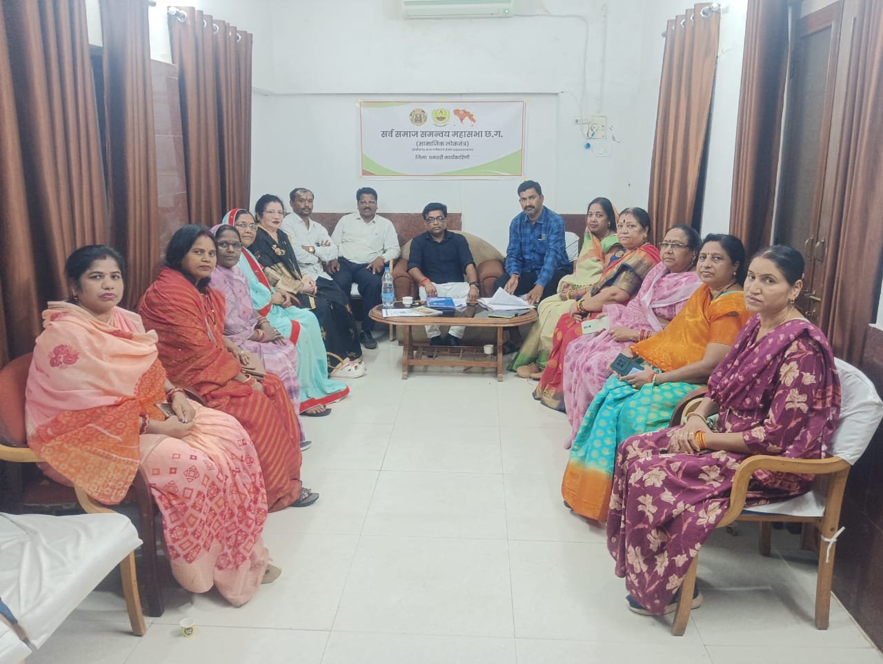 सर्व समाज समन्वय महासभा जिला धमतरी की एक आवश्यक बैठक का आयोजन किया गया, जिसमें प्रदेश अध्यक्ष डॉ. संजीव वशिष्ठ और जिलाध्यक्ष (नारीशक्ति) पद्मिनी चंद्राकर प्रमुख रूप से उपस्थित रहे।